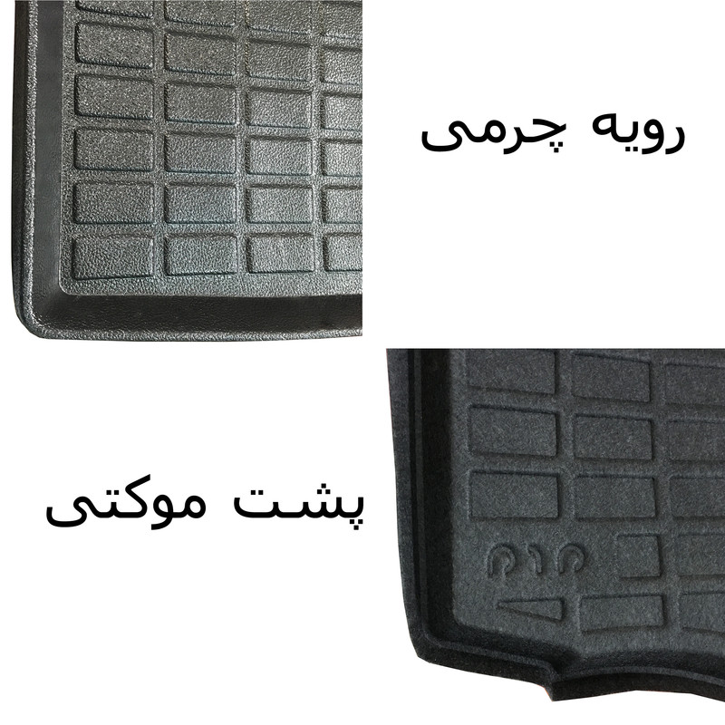 محصول فوق کفپوش سه بعدی اتاق به همراه کفپوش صندوق خودروی تارا میباشد و رنگ بندی درج شده در ان مربوط به کفپوش اتاق میباشد و کفپوش صندوق تنها به صورت رنگ مشکی میباشد . کفپوش سه بعدی خودرو بابل کارپت مدل چرمی سوپر از جنس پلیمر بسیار نرم و انعطاف پذیر , کاملا از مواد نو و بدون هیچگونه بو تولید شده است دور بری ان بسیار با دقت انجام شده است و هیچگونه زائده اضافی ندارد و همچنین مثل سایر محصولات شرکت بابل کارپت دیگر پشت آن نمدی نمی باشد. مهترین ویژگی و مزیت کفپوش مدل لاکچری نسبت به سایر اجناس موجود در بازار نرمی و انعطاف بسیار بالای آن می باشد که باعث سهولت در جایگذاری و بیرون آوردن آن از داخل خودرو میشود. و درباره کفپوش صندوق می توان چنین توضیح داد که جنس رویه آن چرم مصنوعی و جنس زیری آن حالت نمدی دارد تا از لغزش آن در کف صندوق جلو گیری و باعث استحکام ان شود ، کاملا ضد آب است و قابلیت شست و شو دارد دارای لبه پنج سانتی متری می باشد که به طور کامل از ریختن و نفوذ مایعات به کف خودروی شما جلو گیری می کند در ساخت آن از مواد با کیفیتی استفاده شده است. این مواد مقاومت بالایی به کفپوش در برابر خوردگی و شکستگی و ساییدگی بخشیده است و انعطاف بالایی دارد.
